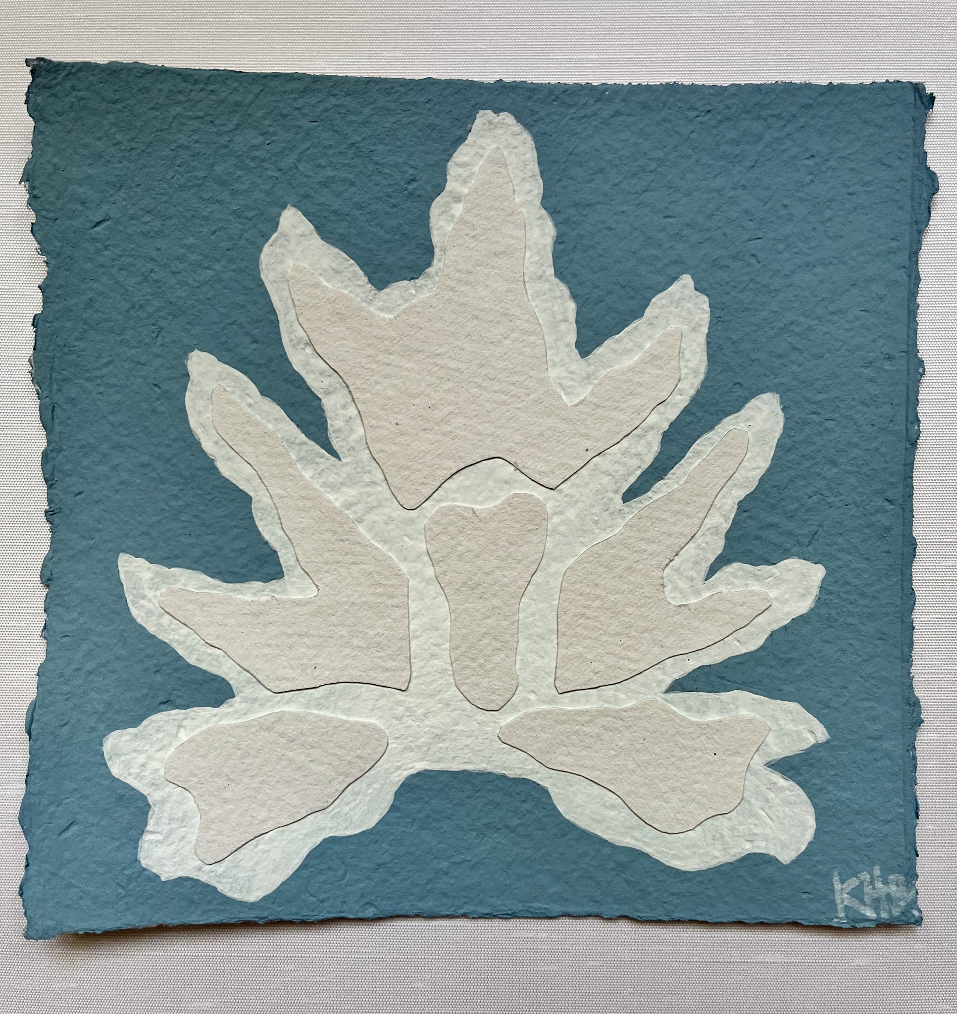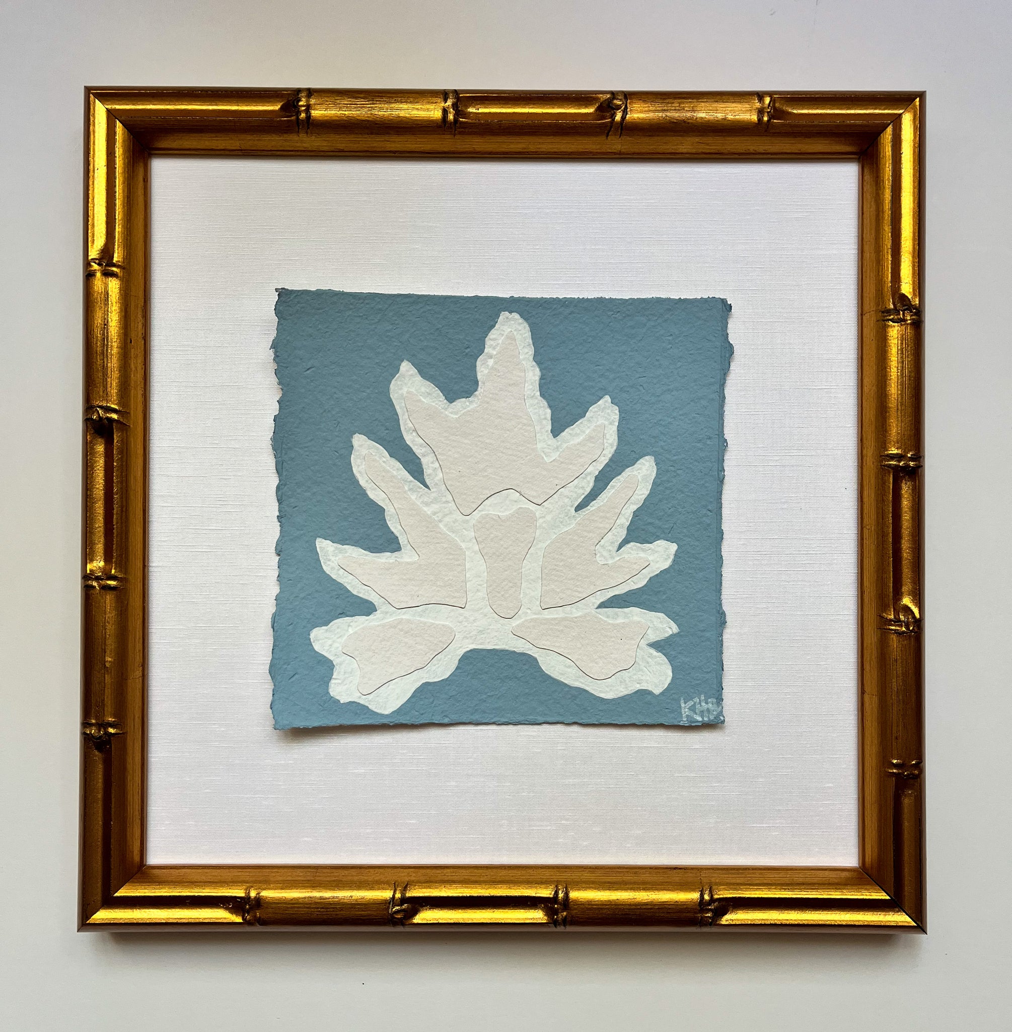 7x7 Blue Split Leaf, Original Artwork by Kendal Blanchard, Southern artist, Southern art, Flower art, Botanical art, Textured art, Collaged art, Classic artwork, Timeless art, Blue and white artwork, Foliage artwork, Traditional artwork, Original artwork, Traditional home artwork, Painted flowers, Botanicals  Florals, Floral artwork, Coastal artwork