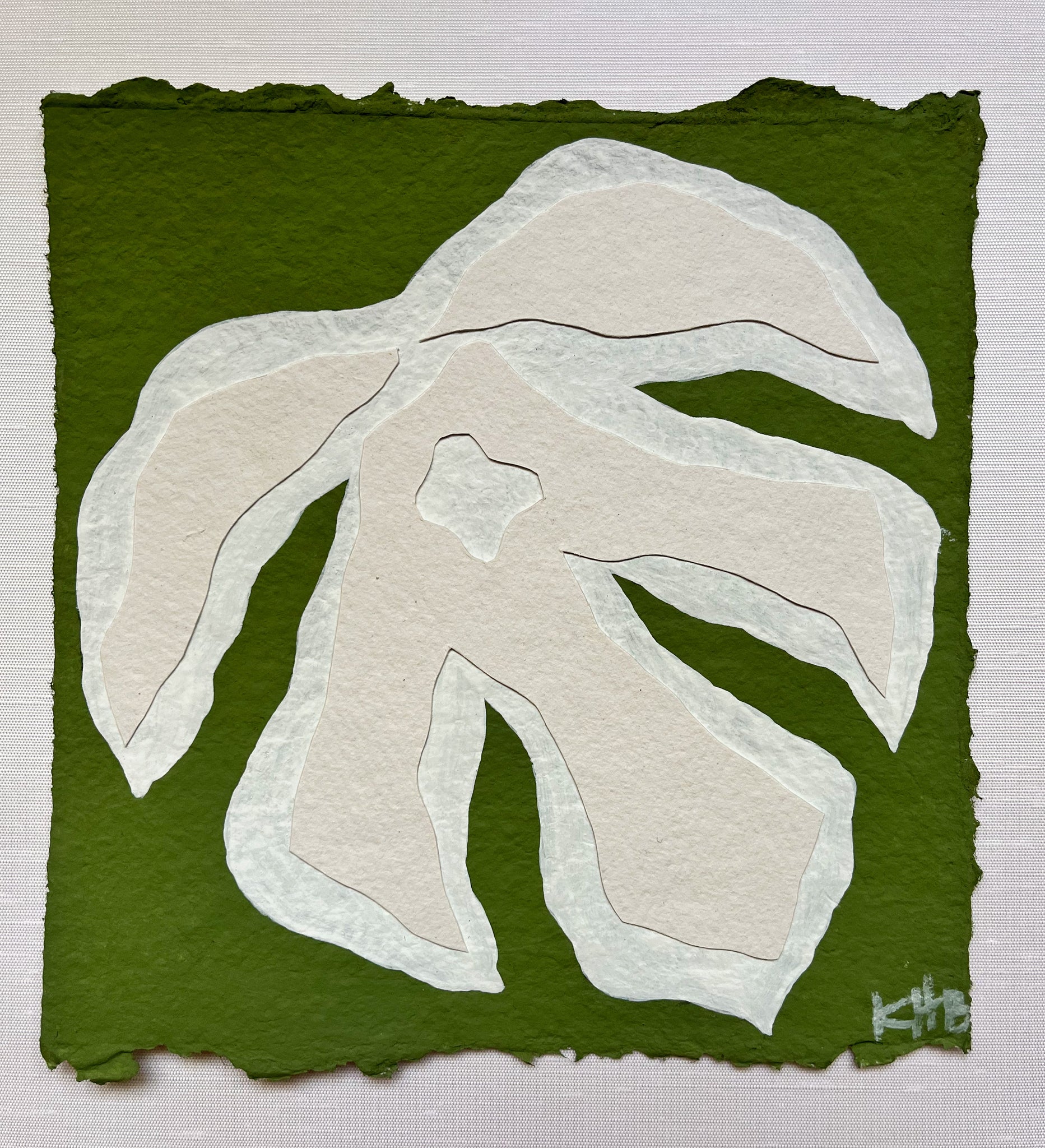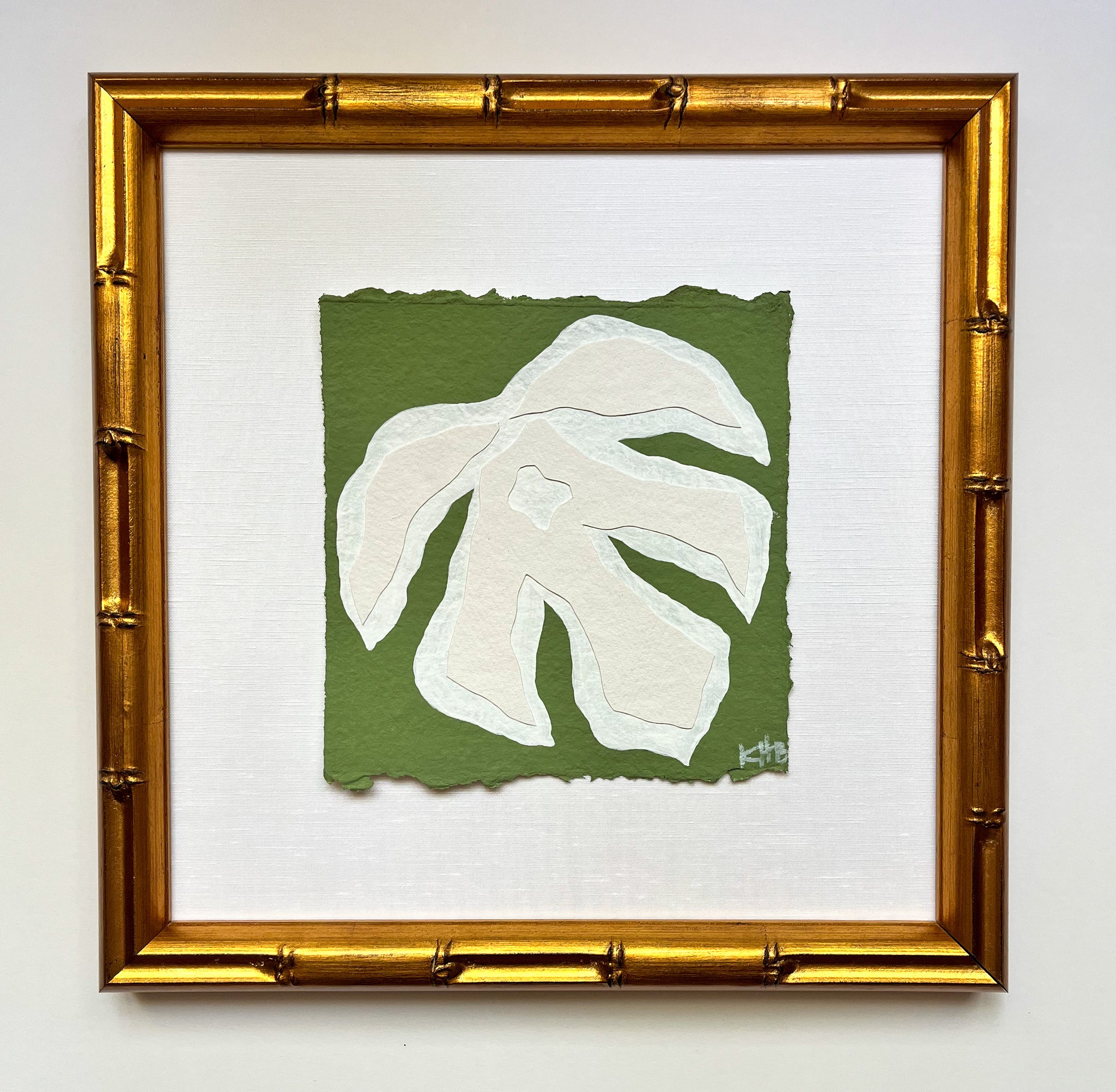 7x7 Green Monstera, Original Artwork by Kendal Blanchard, Southern artist, Southern art, Flower art, Botanical art, Textured art, Collaged art, Classic artwork, Timeless art, Blue and white artwork, Foliage artwork, Traditional artwork, Original artwork, Traditional home artwork, Painted flowers, Botanicals  Florals, Floral artwork, Coastal artwork
