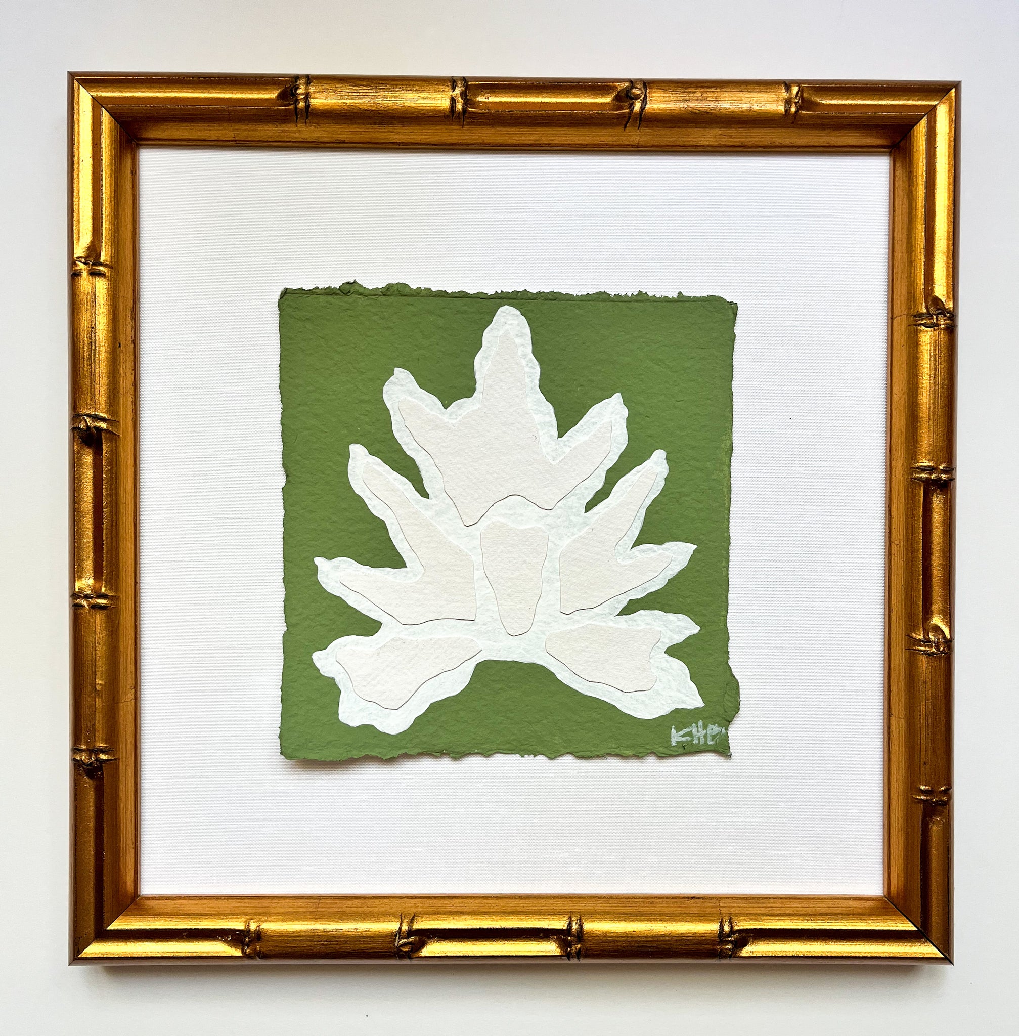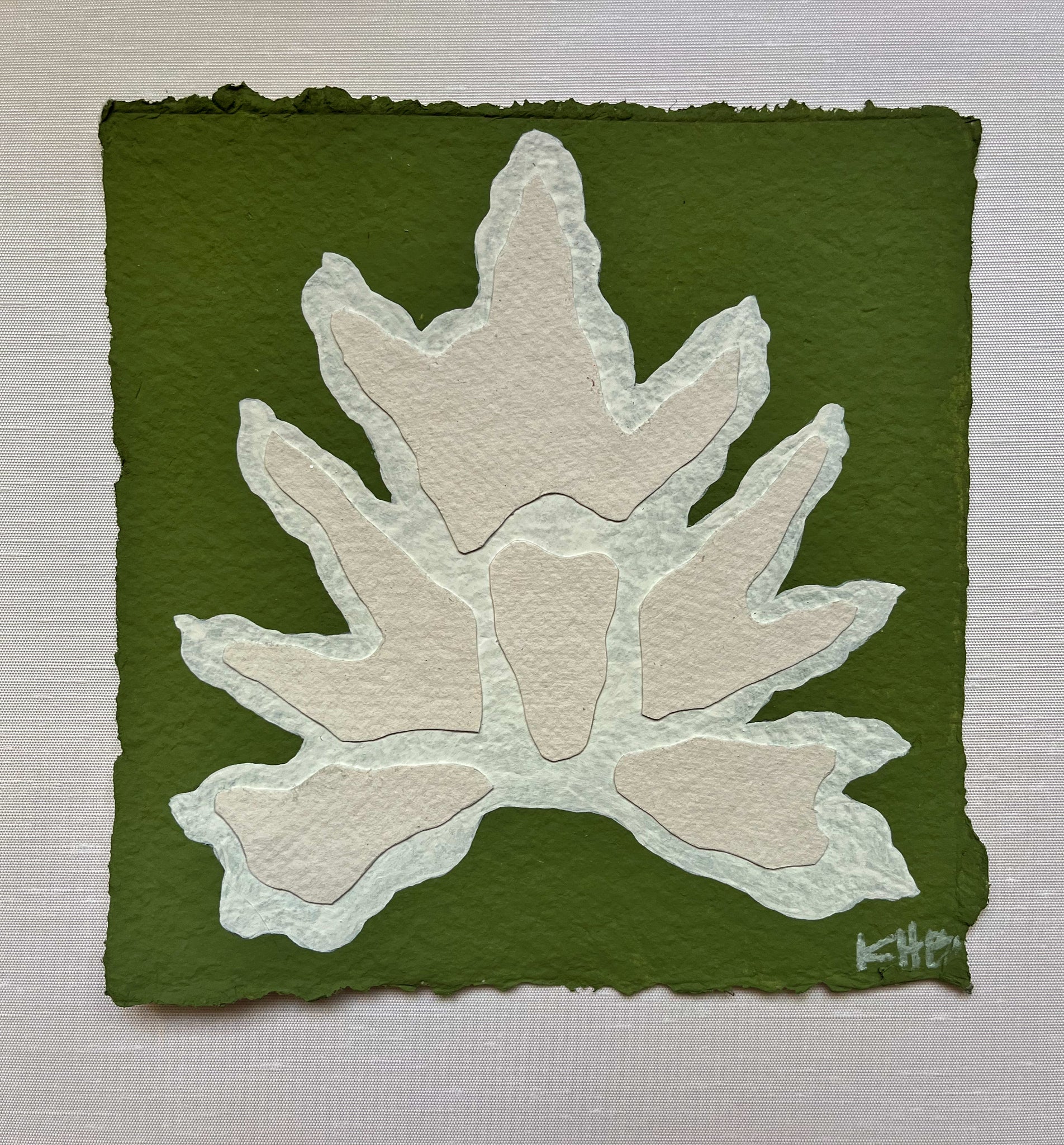 7x7 Green Split Leaf, Original Artwork by Kendal Blanchard, Southern artist, Southern art, Flower art, Botanical art, Textured art, Collaged art, Classic artwork, Timeless art, Blue and white artwork, Foliage artwork, Traditional artwork, Original artwork, Traditional home artwork, Painted flowers, Botanicals  Florals, Floral artwork, Coastal artwork