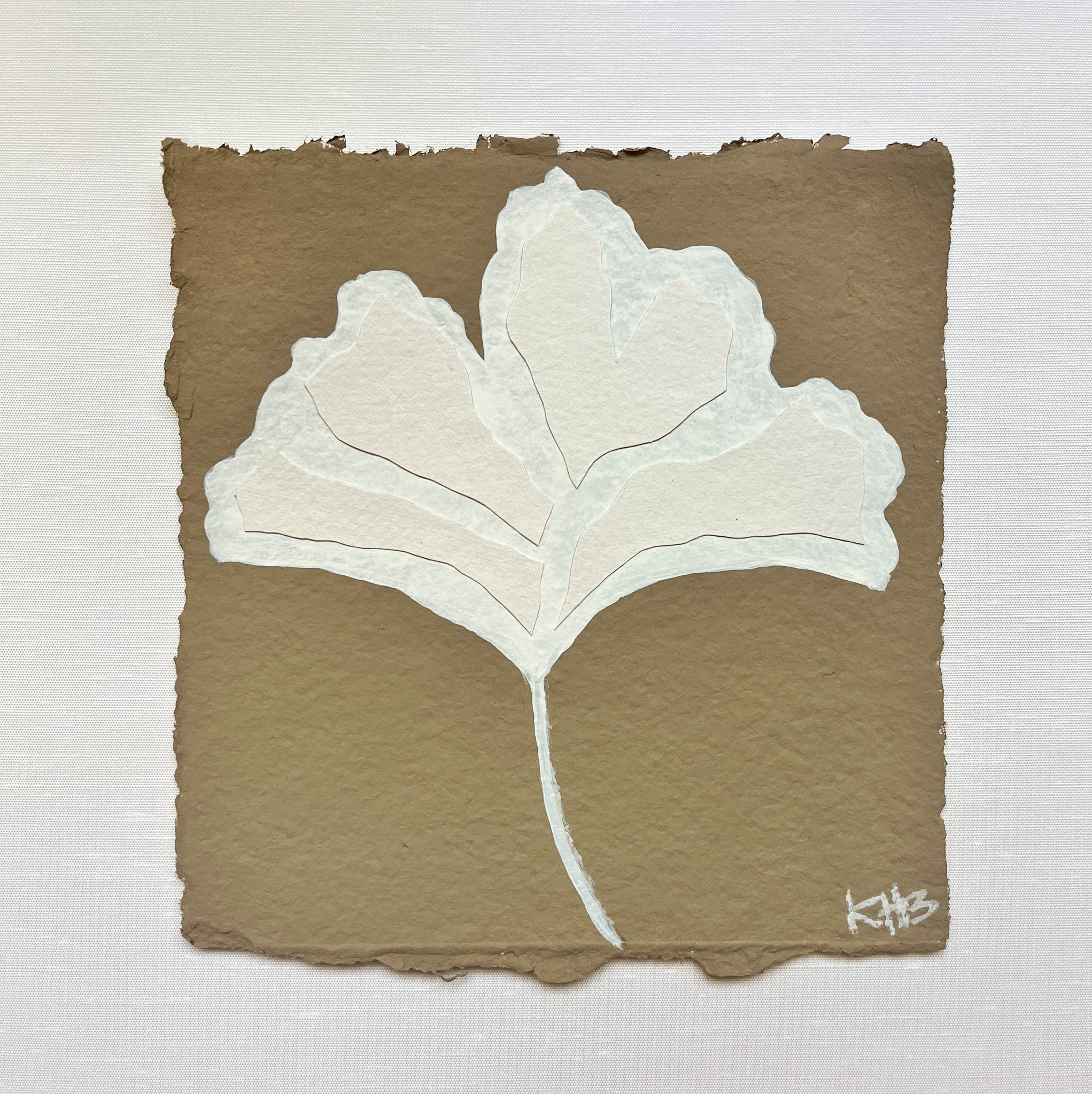7x7 Mushroom Ginkgo Leaf, Original Artwork by Kendal Blanchard, Southern artist, Southern art, Flower art, Botanical art, Textured art, Collaged art, Classic artwork, Timeless art, Blue and white artwork, Foliage artwork, Traditional artwork, Original artwork, Traditional home artwork, Painted flowers, Botanicals  Florals, Floral artwork, Coastal artwork