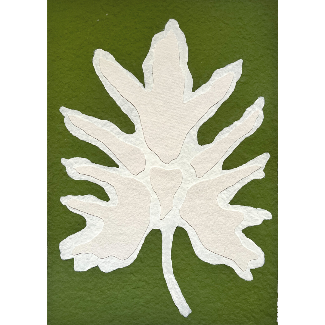 9x12 Green Split Leaf, Original Artwork by Kendal Blanchard, Southern artist, Southern art, Flower art, Botanical art, Textured art, Collaged art, Classic artwork, Timeless art, Blue and white artwork, Foliage artwork, Traditional artwork, Original artwork, Traditional home artwork, Painted flowers, Botanicals  Florals, Floral artwork, Coastal artwork