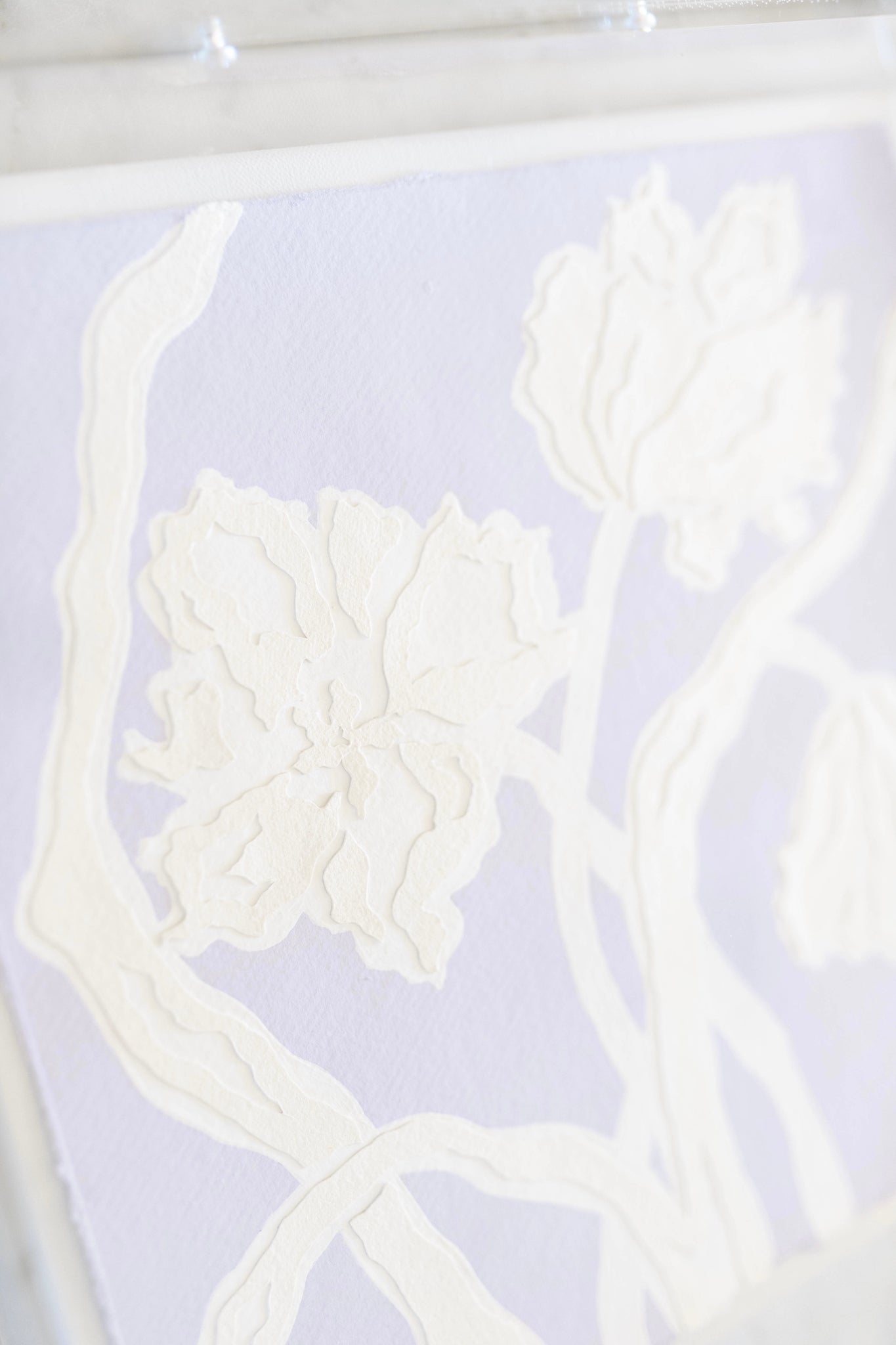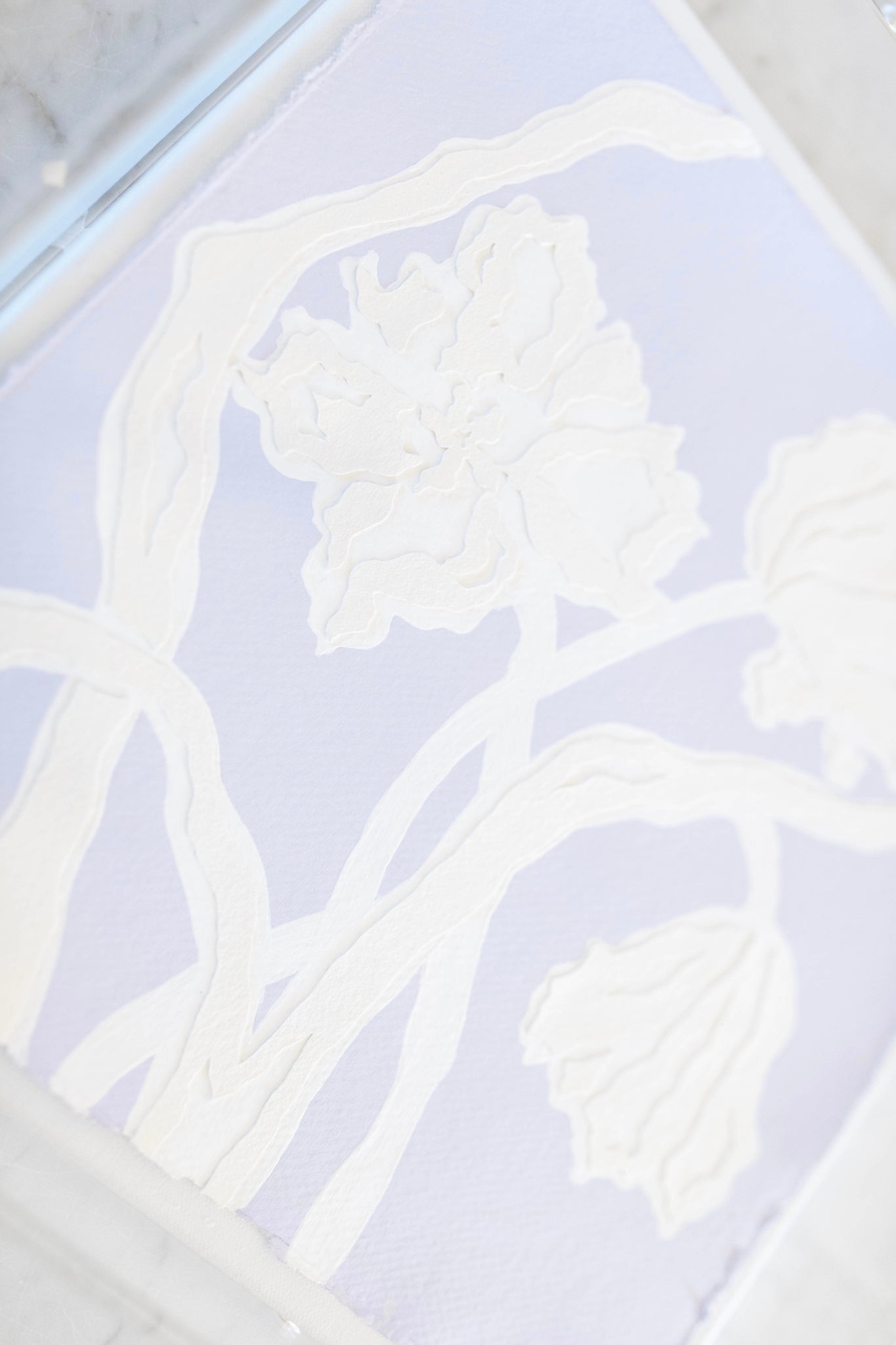 Parrot Tulips in Lavender, Original Artwork by Kendal Blanchard, Southern artist, Southern art, Flower art, Botanical art, Textured art, Collaged art, Classic artwork, Timeless art, Blue and white artwork, Foliage artwork, Traditional artwork, Original artwork, Traditional home artwork, Painted flowers, Botanicals  Florals, Floral artwork, Coastal artwork