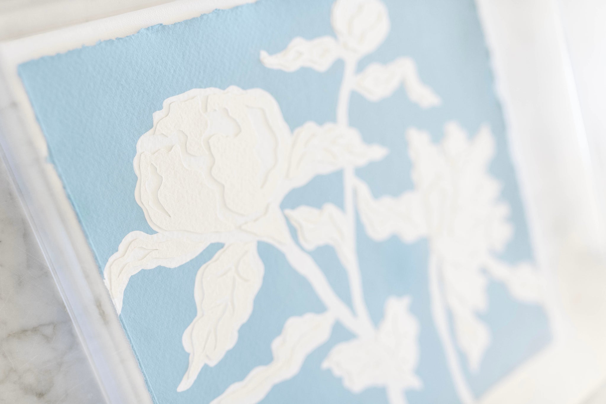 Peony Posey in Dark Blue, Original Artwork by Kendal Blanchard, Southern artist, Southern art, Flower art, Botanical art, Textured art, Collaged art, Classic artwork, Timeless art, Blue and white artwork, Foliage artwork, Traditional artwork, Original artwork, Traditional home artwork, Painted flowers, Botanicals  Florals, Floral artwork, Coastal artwork