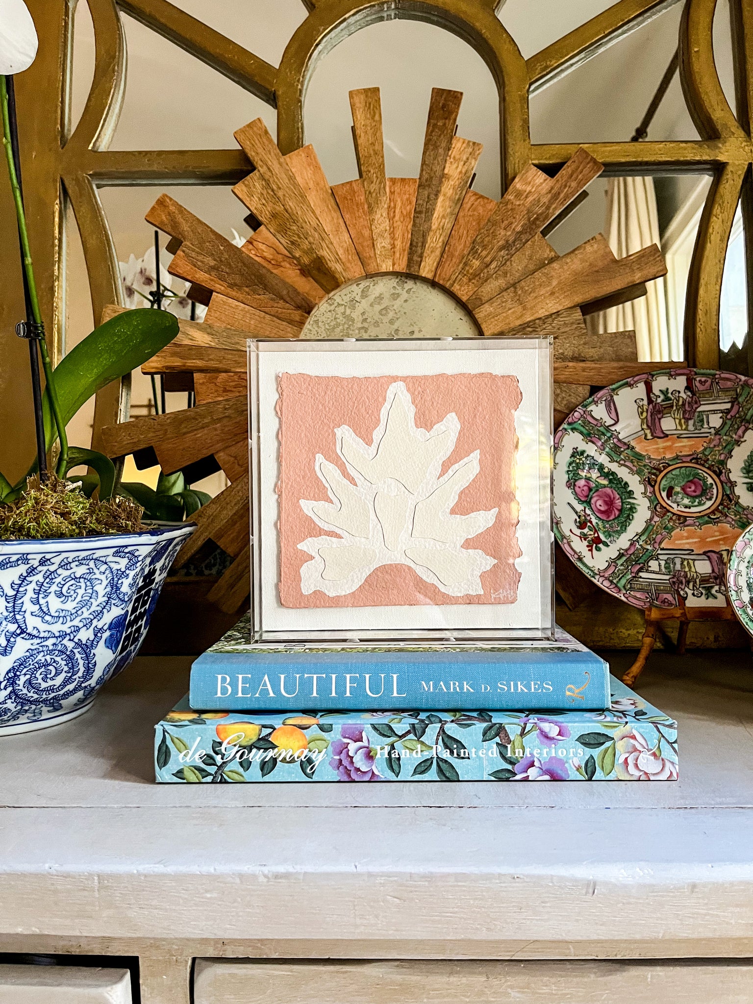 These 7x7 original Collaged Botanicals are painted on hand made paper with deckled edges. Each one is placed on a white canvas and finished in an acrylic box. These are perfect for bookshelves and side tables and the perfect holiday gift.